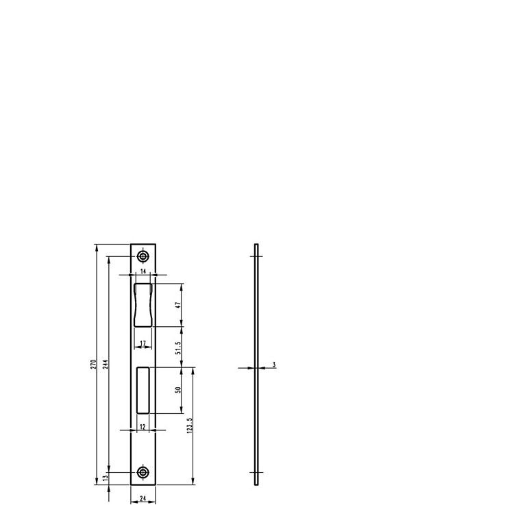 Schließblech b 9000 Edelstahl Breite 24 x Länge 270 mm käntig DIN links / rechts flach