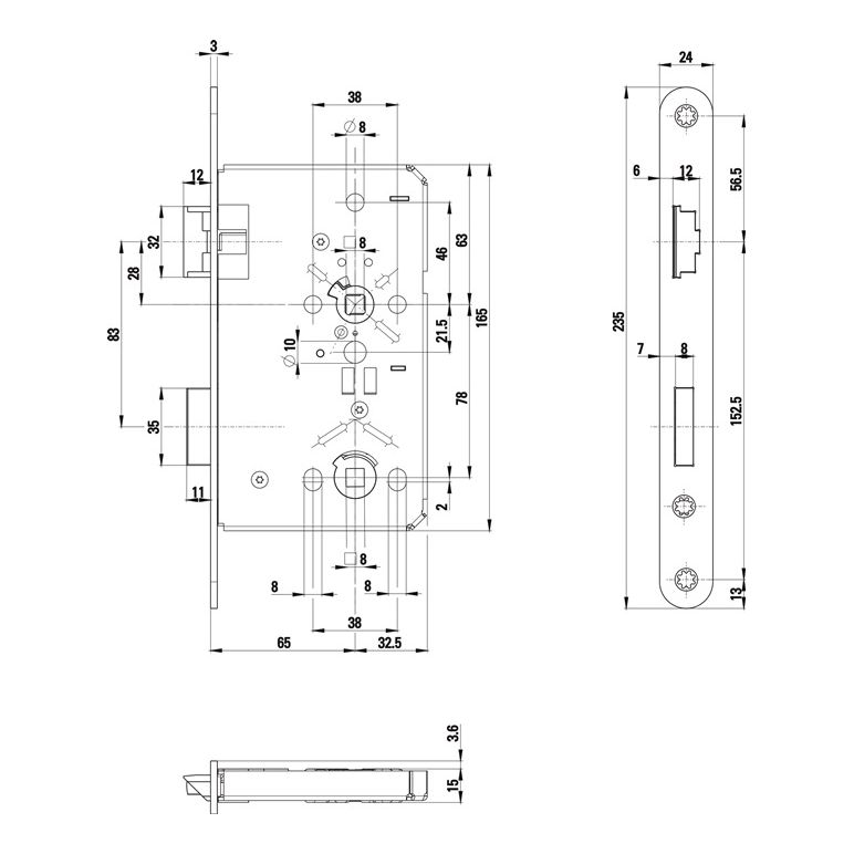 BAD Ausführung · nach DIN 18251-1 Klasse 3 · allseitig geschlossener Schlosskasten · 1-tourig · Stulplänge 235 mm · Entfernung 78 mm · Vierkant 8 mm · Falle und Riegel aus Zinkdruckguss · ohne SchließblechWeitere technische Eigenschaften:· Schlosskasten: allseitig geschlossen· passend für: Zimmertüren