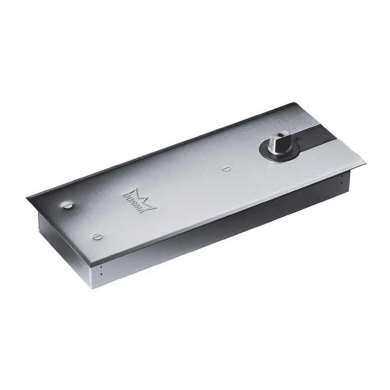 Bodentürschließer für Pendeltüren mit hydraulisch voll kontrolliertem Schließablauf ab ca. 130° · einschließlich Zementkasten und austauschbarer Steckachse · Zubehör wie andere Steckachsen und Vergussmasse auf Anfrage.Weitere technische Eigenschaften:· Feststellbereich bis: 90°· Feststellbereich von: 90°