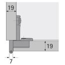 Eingelenkscharnier mit Aufklipstechnik und sichtbarer Rolle · Qualitätseinstufung nach EN 15570 · für Büro- · Organisations- und Objektmöbel · getrennte Montage von Topf und Grundscharnier · Aufklipsschnellmontage · Rollenlänge 39 mm · Topfdurchmesser 35 mm · Topftiefe 13 mm · integrierte Exzenter-Auflagenverstellung - 2 mm · integrierte Exzenter-Höhenverstellung + 2 mm / - 2 mm · Zinkdruckguss vernickelt