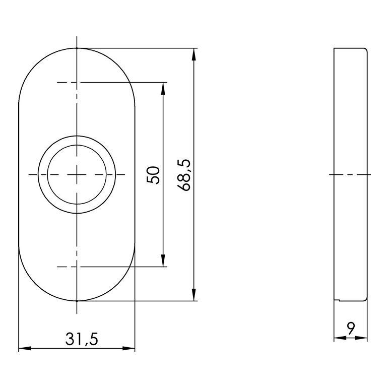 Drückerrosette 6621 23,5 er Edelstahl er Schildstärke 9 mm rund oval