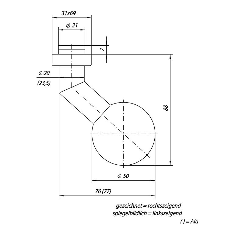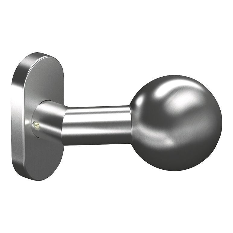 feststehender, runder Kugelknopf 3548 · schräg, auf ovaler Profiltür-Rosette 6620 · DIN links / rechtsWeitere technische Eigenschaften:· Befestigungssystem: verdeckte Verschraubung· Anschlagrichtung: DIN links / rechts· Farb-Nr.: ER· Knopfdurchmesser: 50mm