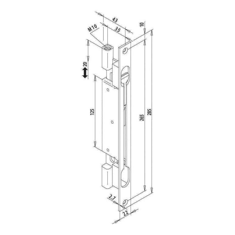 Türkantriegel Basküle 35 mmStulpb.22mm Stulpl.285mm sta verz.F-St.ktg - BK345K22A - Fuhr