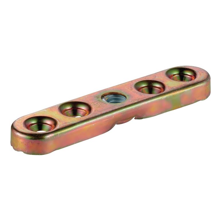 verzinkt, gelb · für Holzflügel · zum Aufschrauben · mit mittig platziertem GewindeWeitere technische Eigenschaften:· Oberfläche: verzinkt· d: M10· b: 20mm· d1: 6mm· l: 100mm· h: 8mm
