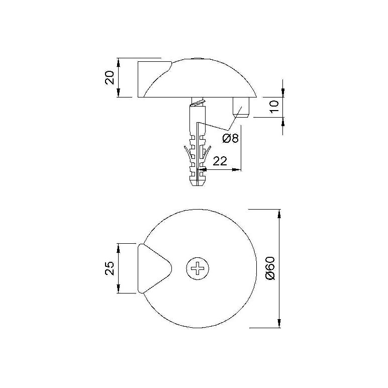 Türpuffer 2003.82 ø 60 mm Höhe 20 mm Edelstahl matt Dübelmontage