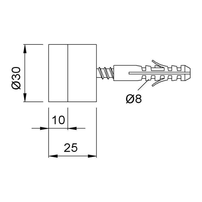 Wandtürpuffer 2008 VA ma L.25mm KWS