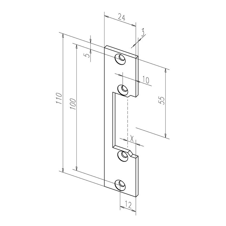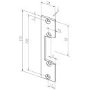 kurzes Flachschließblech · ohne Riegelausschnitt · mit Fallenausschnitt · DIN links / rechts verwendbar · mit 2 Befestigungsbohrungen · für gängige eff-eff-Standard-Türöffnermodelle außer ProFix®-VariantenWeitere technische Eigenschaften:· Stulp: käntig