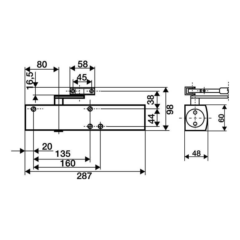 obenliegender Zahntrieb-Türschließer · EN 1154 A · für Rauch- und Feuerschutztüren (Montageplatte verwenden) · optische Schließkraftanzeige · regulierbare Öffnungsdämpfung · regulierbare, thermostabilisierte Schließgeschwindigkeit · alle Funktionen von vorn einstellbar · Endschlageinstellung über Gestänge · Sicherheitsventil in Auf- und Zu-Richtung · für rechts und links angeschlagene TürenWeitere technische Eigenschaften:· Ergänzung: ohne Gestänge