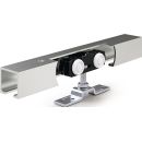 Komplett-Set für Holz-, Kunststoff- oder Metalltüren bis 80 kg · Wand- oder Deckenmontage · Set für 1 Tür bestehend aus Laufschiene jeweiliger Länge, Rollenwagen, Wandbefestigungswinkel, Trägerplatten, Puffer beidseitig, Bodenführung Holz · passend für Glasflügel mit Set Glasklemmplatte Rollan 30 mm