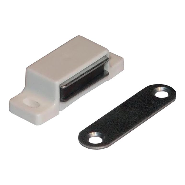 mit Gegenplatte starr · Lochabstand 38 mm · einstellbar über Langloch · Gegenplatte 45 x 12 mm · 2 Löcher · Gehäuse aus Kunststoff · Gegenplatte aus Stahl · Haftkraft 4-5 kgWeitere technische Eigenschaften:· Befestigungsart: zum Anschrauben