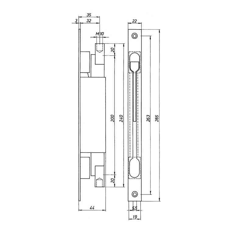 DENI Kantriegel 9221 Stulpl.285mm Stulp-B.22mm STA verz.Hub 20mm - 9221 1035 33