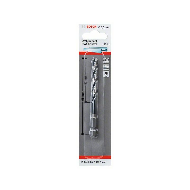 Bosch HSS Spiralbohrer Impact Control mit Sechskantschaft, 5,5 x 57 x 98 mm, 1er-Pack (2 608 577 057)