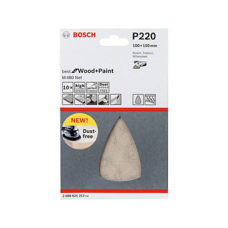 Bosch Schleifblatt M480 Net, Best for Wood and Paint, 100 x 150 mm, 220, 10er-Pack (2 608 621 212)