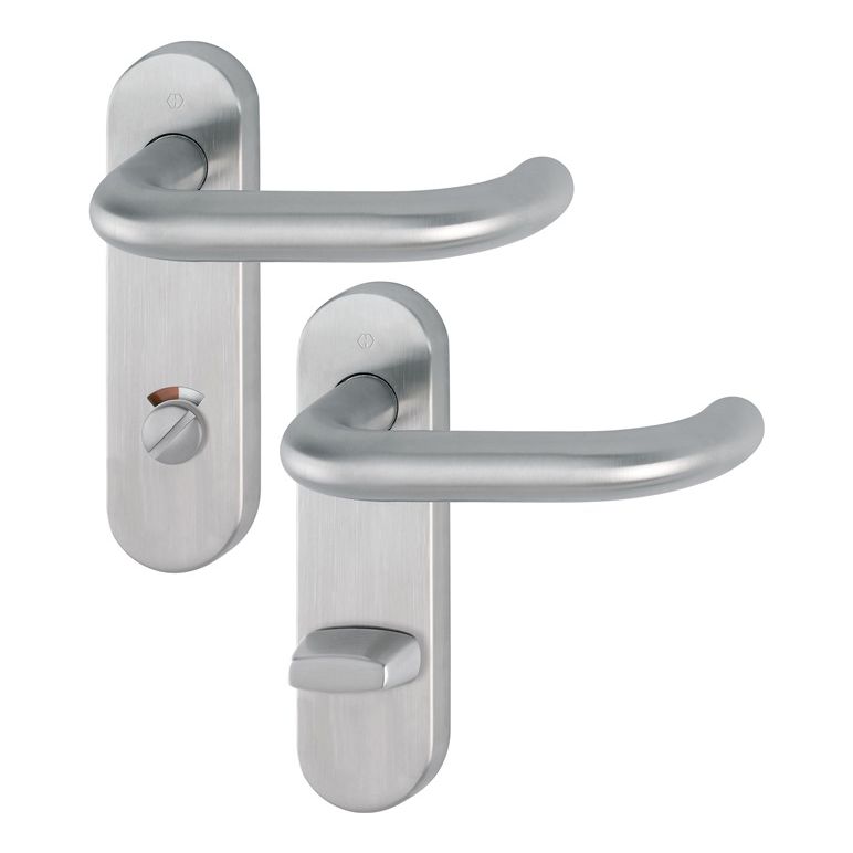 Kurzschild-Garnitur für Innentüren / Wohnungsabschlusstüren · geprüft nach DIN EN 1906: 47-0150A und PIVCERTPlus (1.000.000 Prüfzyklen), Objekt-Garnitur (Gebrauchs-Kategorie Klasse 4) · Lagerung: Türgriffe fest/drehbar (Wechselgarnitur: außen Knopf fest), Rückholfedern, HOPPE-Steckgriff-Verbindung mit Kugel-Arretierung Sertos®, wartungsfreie Gleitlager · Verbindung: HOPPE-Profilvollstift (Drückergrt.) / HOPPE-FDW-Profilvollstift (Wechselgrt.), gehärtet · Unterkonstruktion: Stahl, Stütznocken · Befestigung: verdeckt, durchgehend, Gewindeschrauben M5 · Anschlagrichtung DIN links / rechts · TS 40 - 45 mm · Entfernung 78 mmWeitere technische Eigenschaften:· Befestigungsart: Sertos®· Entfernung: 78mm· Vierkant: 8mm