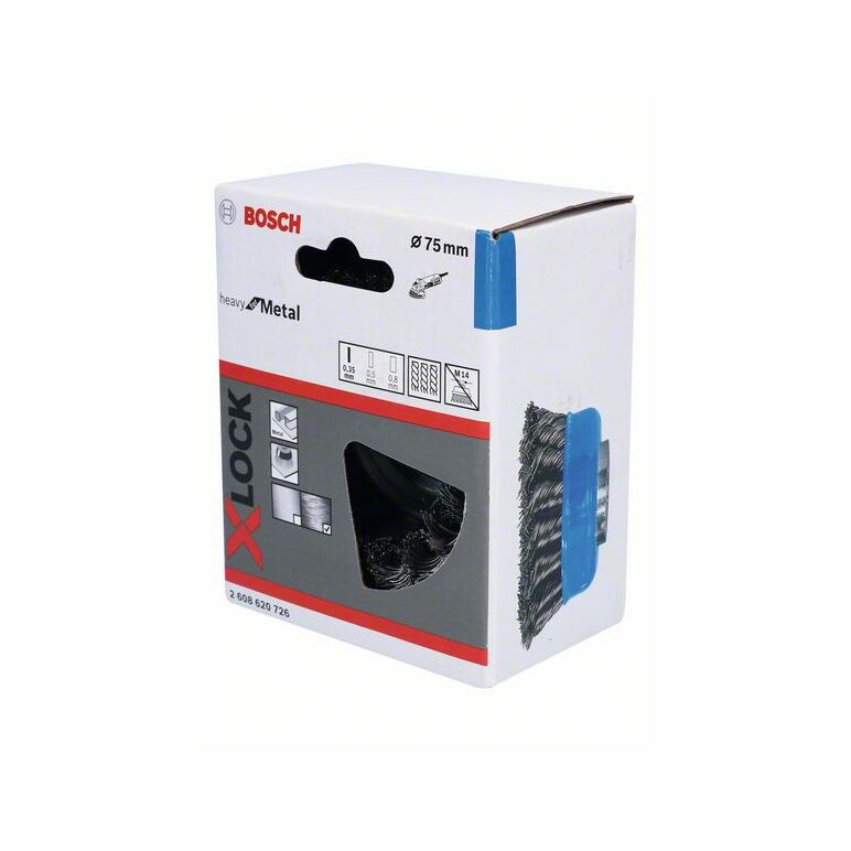 Bosch Topfbürste X-LOCK Heavy for Metal, 75 mm, 0,35 mm, gezopfter Stahldraht (2 608 620 726)