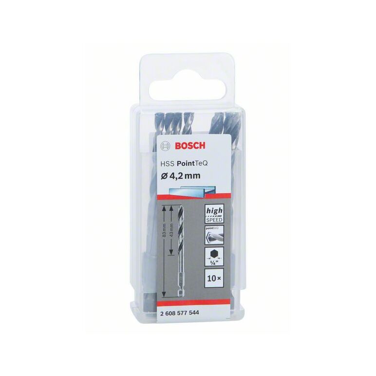 Bosch HSS-Spiralbohrer PointTeQ mit Sechskantschaft 10-teiliges Set 4,2 x 43 x 83 mm (2 608 577 544)