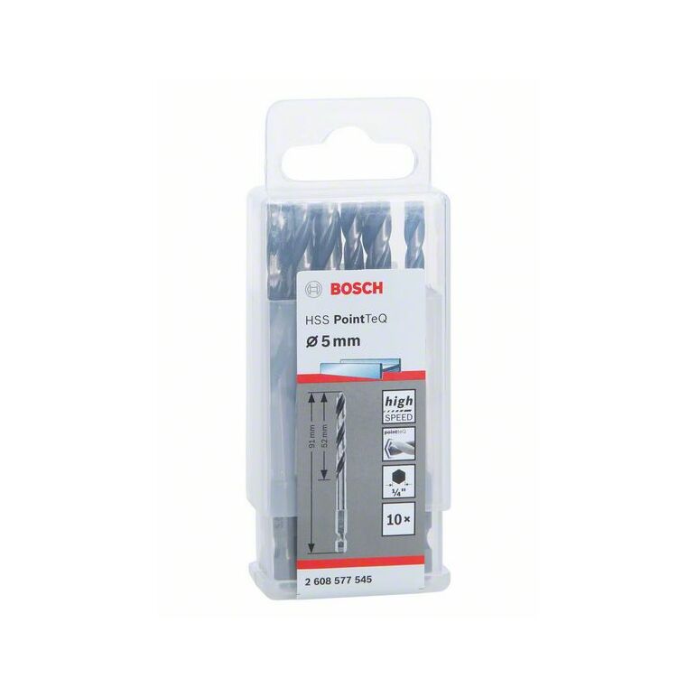 Bosch HSS-Spiralbohrer PointTeQ mit Sechskantschaft 10 -teiliges Set 5,0 x 52 x 91 mm (2 608 577 545)