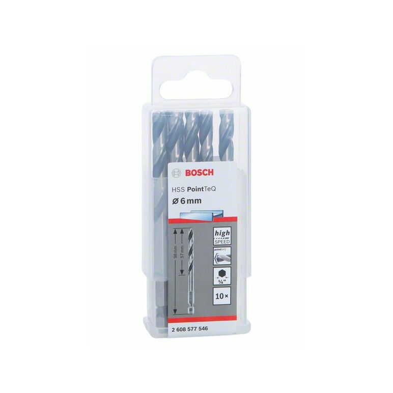 Bosch HSS-Spiralbohrer PointTeQ mit Sechskantschaft 10-teiliges Set 6,0 x 57 x 98 mm (2 608 577 546)