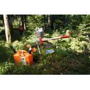 Zum Transport für 5 l Kraftstoff und 3 l Sägekettenhaftöl. Mit UN-Zulassung, Farbe: orange/transparent. Zwei kindergesicherte Verschlüsse, inkl. Auslaufrohr, Ausgießer mit Kappe und inklusive 2 Köcher zur Aufnahme von Werkzeug und Einfüllsystem Kraftstoff.