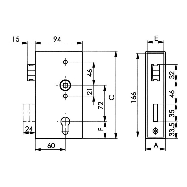 AMF Schlosskasten 140UNIG DIN L/R Maß A30xB94xC172mm Dornm.60mm Entf.72mm