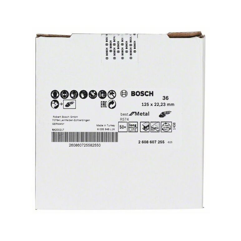 Bosch Fiberschleifscheibe R574 Best for Metal, Zirkonkorund, 125 mm, 22,23 mm, 36 (2 608 607 255)
