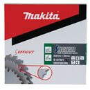Die Efficut Technologie von Makita ermöglicht ein schnelles und effizientes Arbeiten in Holz und Metall. Durch die spezielle Zahngeometrie erhöht sich die Schnittgeschwindigkeit um bis zu 250 % im Vergleich zu einem herkömlichen Sägeblatt. Dadurch kommt eine Zeitersparniss von bis zu 60 % zu stande. Aufgrund der Efficut Technologie ist dieses Sägeblatt besonders für Akku-Maschinene sehr gut geeignet. Die spezielle geschärften Zahnköpfe sorgen für saubere Schnitte.