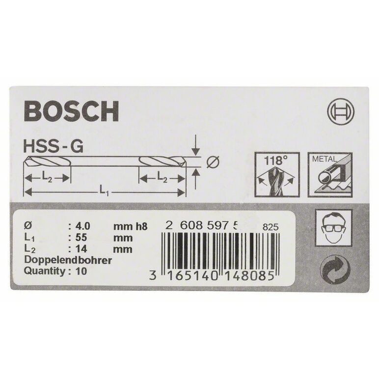 Bosch Doppelendbohrer HSS-G, 4 x 14 x 55 mm, 10er-Pack (2 608 597 588)