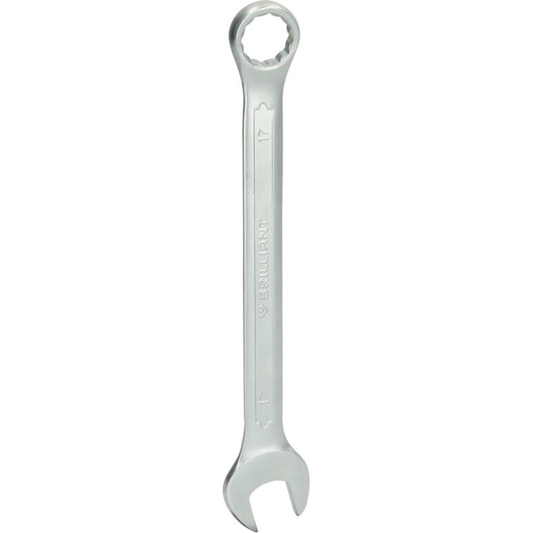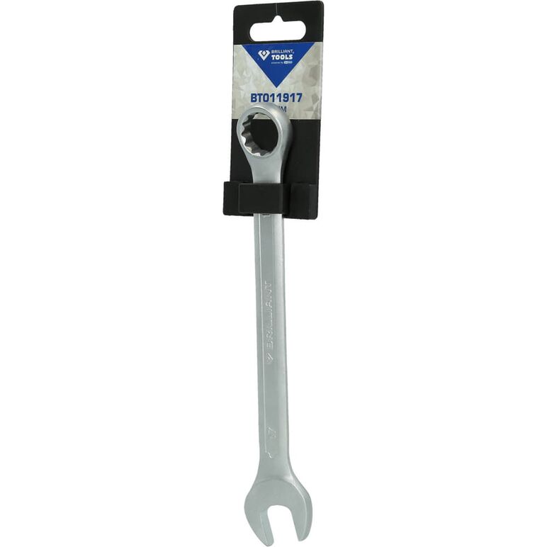 Der BRILLIANT TOOLS Ring Maulschlüssel BT011917 wird aus Chrom Vanadium Stahl im Gesenk geschmiedet und anschließend gehärtet. Die Oberfläche ist für einen verbesserten Rostschutz matt verchromt und nach DIN 3113 Form A gefertigt, dadurch sitzt er auch besonders gut in der Hand. Der metrische Ring-Maulschlüssel hat eine um 15° abgewinkelte Ringseite und eine 15° Maulstellung. Der Ring-Maulschlüssel wird aus Chrom Vanadium Stahl im Gesenk geschmiedet und anschließend gehärtet. Der Schlüssel hat eine Gesamtlänge von 24 cm, an dem Maul eine Kopfhöhe von 6,9 mm sowie an dem Ring 11,7 mm.