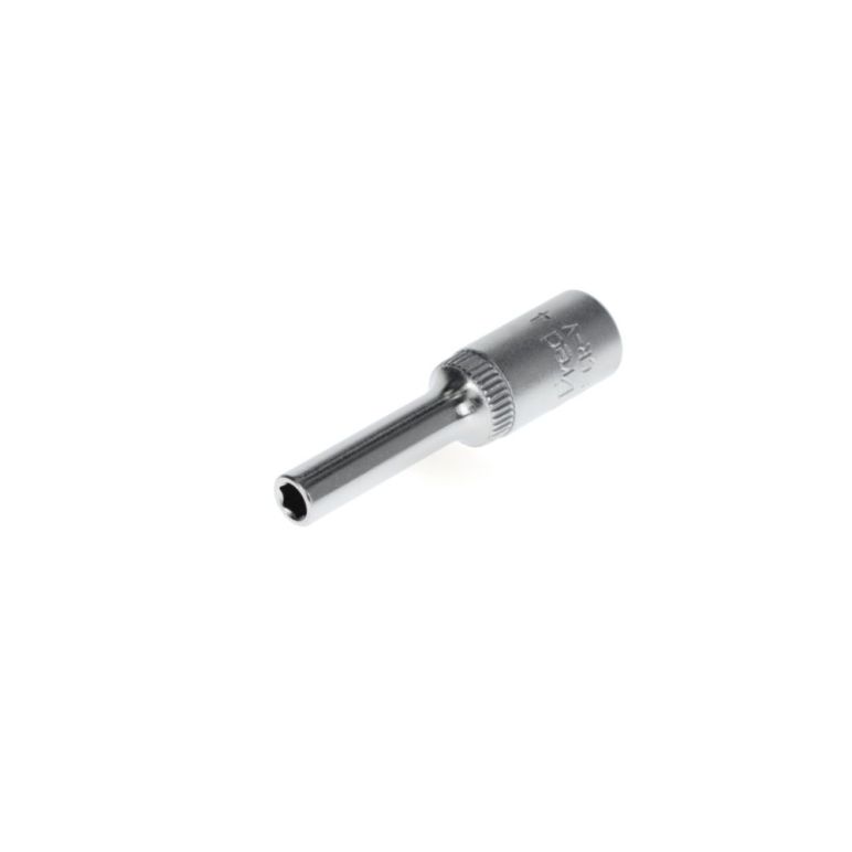 PASSENDES ZUBEHÖR: Die lange 4 mm 6-kant Nuss ist die ideale Ergänzung für Ihren Werkzeugkoffer. Der Adapter mit Innenvierkantantrieb ist 50 mm lang und passt auf eine 1/4 Zoll Knarre.