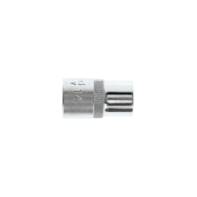 PASSENDES ZUBEHÖR: Die 14 mm 6-kant Nuss ist die ideale Ergänzung für Ihren Werkzeugkoffer. Der Adapter mit Innenvierkantantrieb ist 38 mm lang und passt auf eine 1/2 Zoll Knarre.