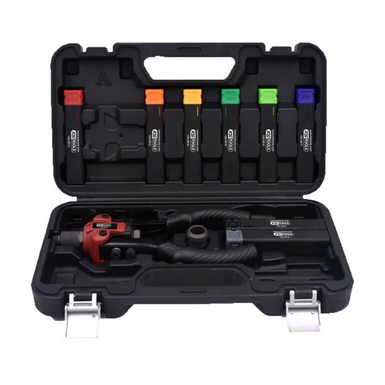 - inklusive 5 auswechselbaren Mundstücken und 6 auswechselbaren Nietmutternzugdornen
