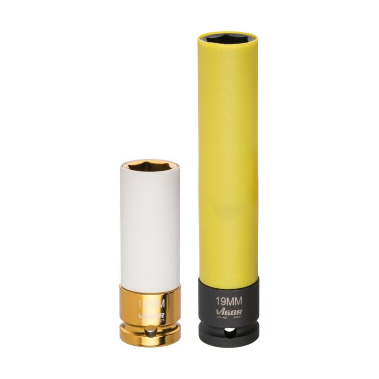 VIGOR Schlagschrauber Steckschlüssel-Einsatz SW 19, 150 mm V5931 ∙ Vierkant hohl 12,5 mm (1/2 Zoll) ∙ Außen-Sechskant Profil ∙ 19 ∙ Gesamtlänge: 150 mm