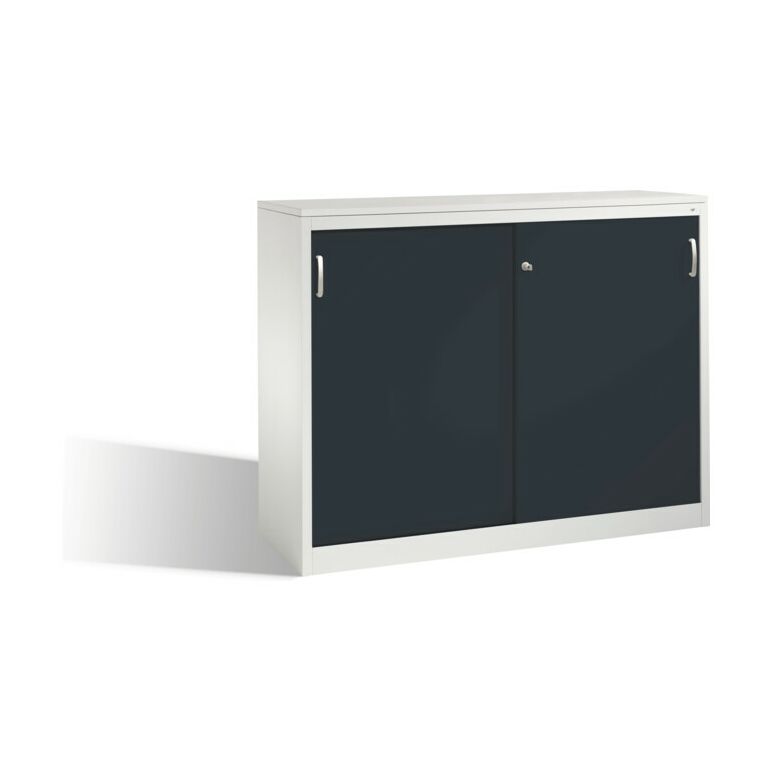 • 1x C+P Akten-Sideboard Acurado mit Schiebetüren, 2 x 3 Ordnerhöhen, H1200xB1600xT500mm Front Schwarzgrau Korpus Lichtgrau