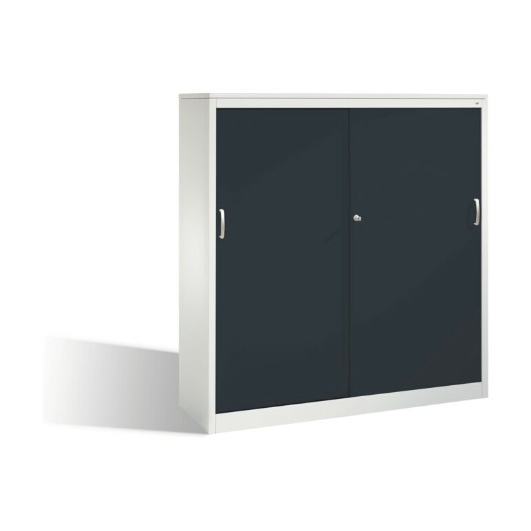 C+P Akten-Sideboard Acurado mit Schiebetüren, 2 x 4 Ordnerhöhen, H1600xB1600xT500mm Front Schwarzgrau Korpus Lichtgrau