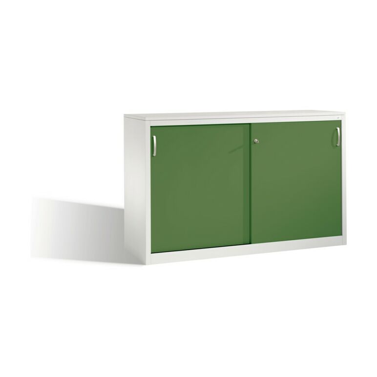C+P Akten-Sideboard Acurado mit Schiebetüren, 2 x 2 Ordnerhöhen, H1000xB1600xT500mm Front Resedagrün Korpus Lichtgrau