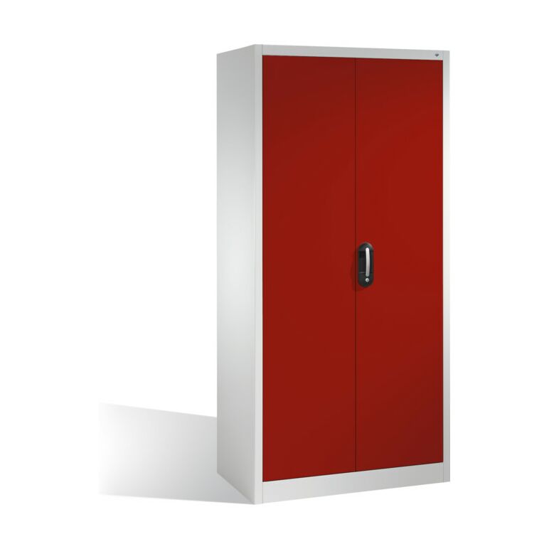 - 1x C+P Werkzeugschrank mit Drehtüren, 4 Böden und Garderobenstange, H1950xB930xT500mm Front Rubinrot Korpus Lichtgrau
