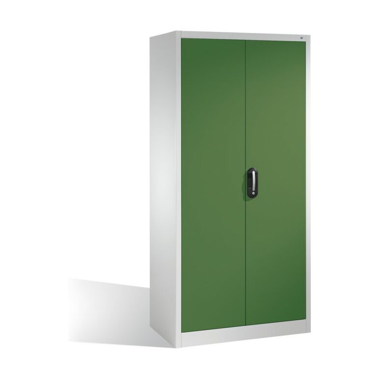 C+P Werkzeugschrank mit Drehtüren, 4 Böden und Garderobenstange, H1950xB930xT500mm Front Resedagrün Korpus Lichtgrau
