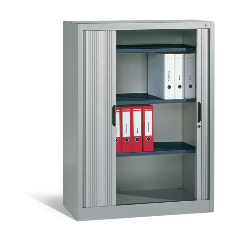 - 1x C+P Akten-Sideboard Omnispace mit Rollladen, 3 Ordnerhöhen, H1345xB1000xT420mm Weißaluminium