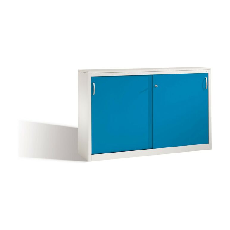C+P Akten-Sideboard Acurado mit Schiebetüren, 2 x 2 Ordnerhöhen, H1000xB1600xT400mm Front Lichtblau Korpus Lichtgrau