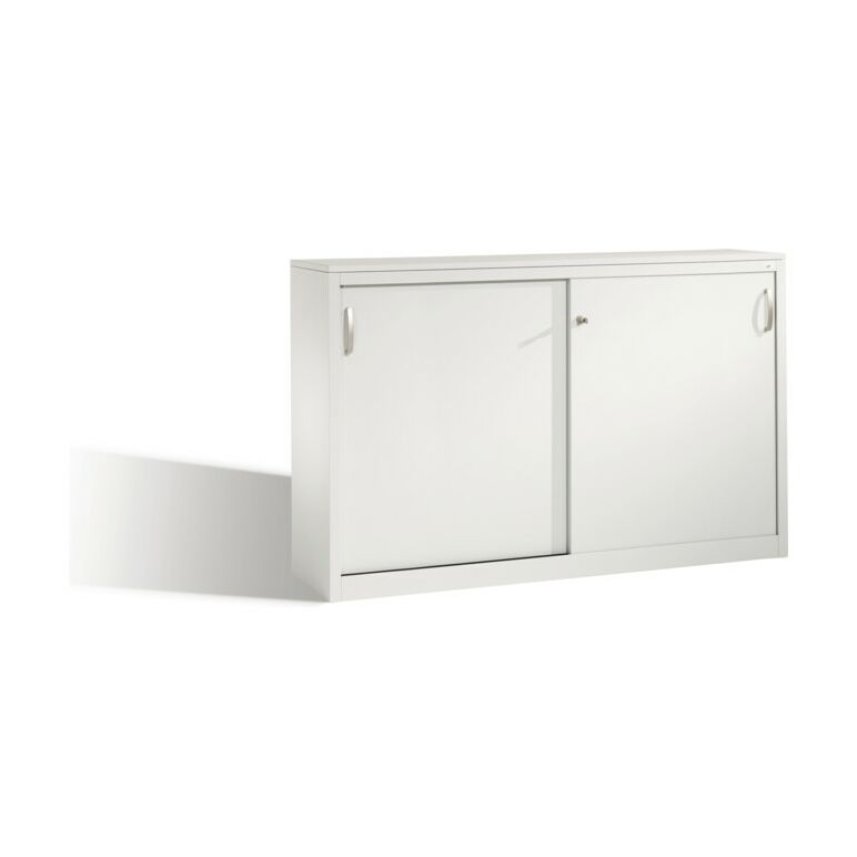 C+P Akten-Sideboard Acurado mit Schiebetüren, 2 x 2 Ordnerhöhen, H1000xB1600xT400mm Front Lichtgrau Korpus Lichtgrau