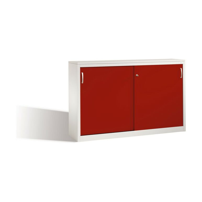 C+P Akten-Sideboard Acurado mit Schiebetüren, 2 x 2 Ordnerhöhen, H1000xB1600xT400mm Front Rubinrot Korpus Lichtgrau