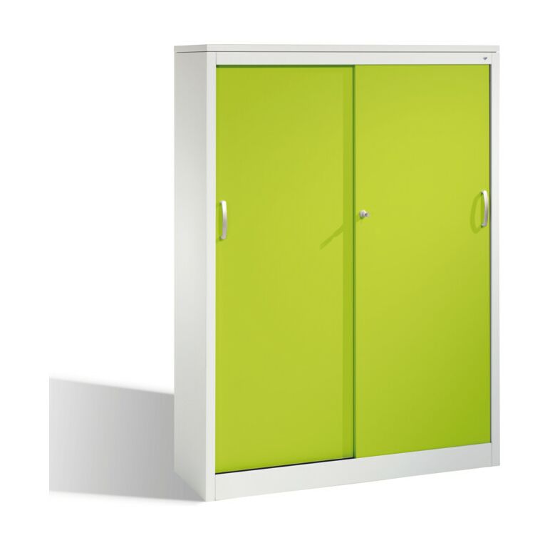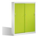 • 1x C+P Akten-Sideboard Acurado mit Schiebetüren, 4 Ordnerhöhen, H1600xB1200xT400mm Front Viridingrün Korpus Lichtgrau