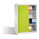 • 1x C+P Akten-Sideboard Acurado mit Schiebetüren, 4 Ordnerhöhen, H1600xB1200xT500mm Front Viridingrün Korpus Lichtgrau