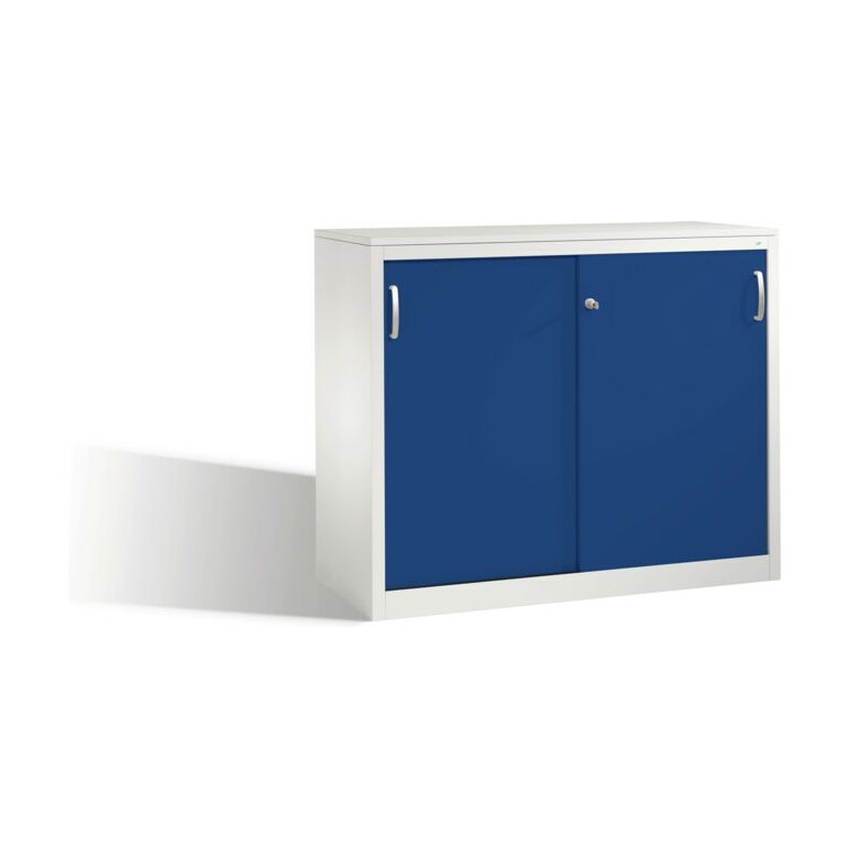 • 1x C+P Akten-Sideboard Acurado mit Schiebetüren, 2 Ordnerhöhen, H1000xB1200xT500mm Front Enzianblau Korpus Lichtgrau