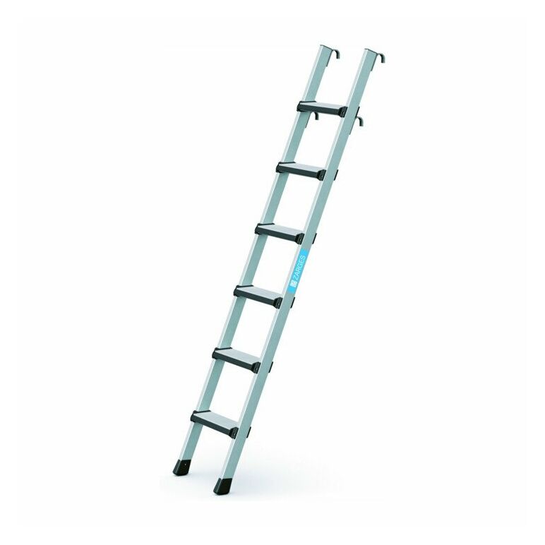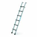 Die flexible Leiter sorgt für sicheren Aufstieg an Regalen und kann auf die gewünschte Höhe angepasst werden.