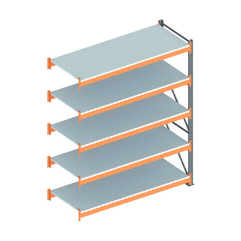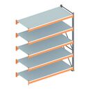 Großfachregal mit Stahlpaneelen für die Lagerung von leichtem bis mittelschwerem Stückgut, nicht geeignet für die Lagerung von Paletten und zur Staplerbedienung