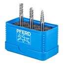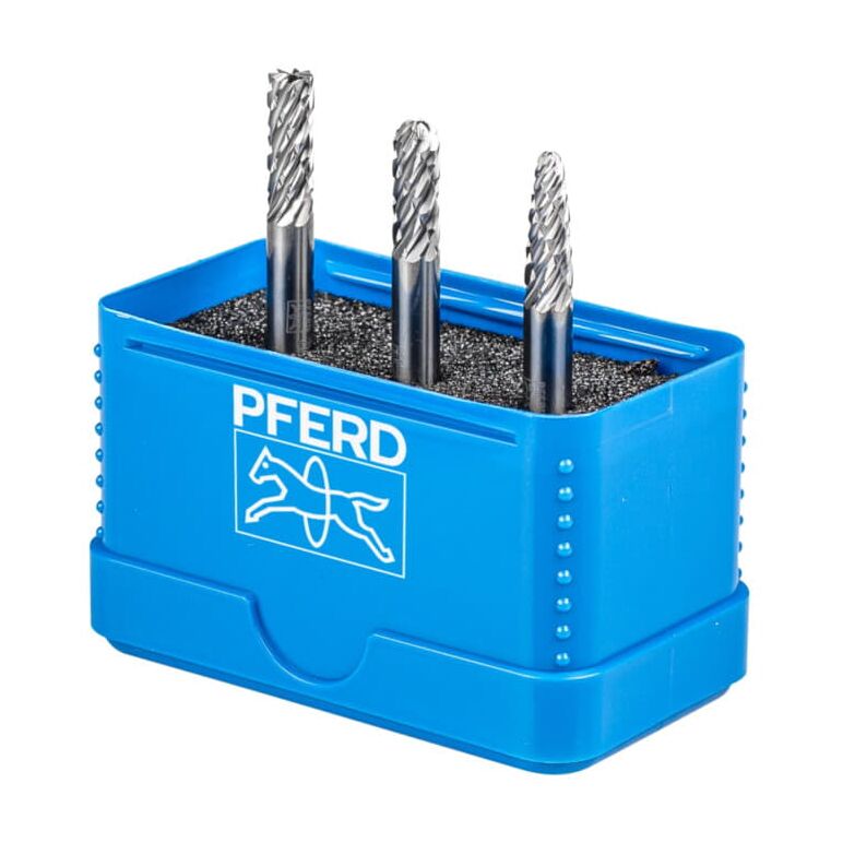 - Das Set 1406 ALLROUND enthält drei Hartmetallfrässtifte für den vielseitigen Einsatz auf den wichtigsten Werkstoffen wie Stahl und Stahlguss, Edelstahl (INOX), NE-Metallen und Gusseisen in den gebräuchlichsten Formen und Abmessungen