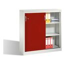 • 1x C+P Akten-Sideboard Acurado mit Schiebetüren, 3 Ordnerhöhen, H1200xB1200xT400mm Front Rubinrot Korpus Lichtgrau