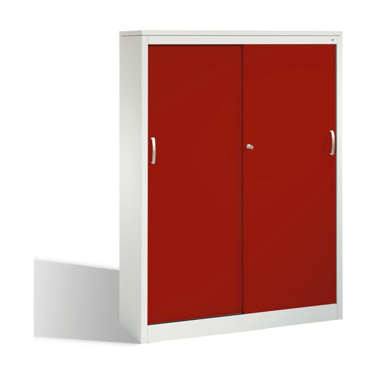 • 1x C+P Akten-Sideboard Acurado mit Schiebetüren, 4 Ordnerhöhen, H1600xB1200xT400mm Front Rubinrot Korpus Lichtgrau