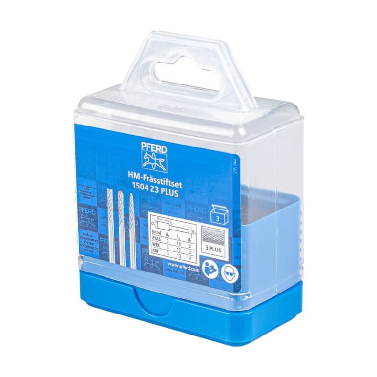 - Das Set 1504 Zahnung 3 PLUS enthält drei Hartmetallfrässtifte in den gebräuchlichsten Formen und Abmessungen für Anwendungen im Werkstattbereich